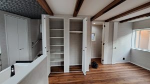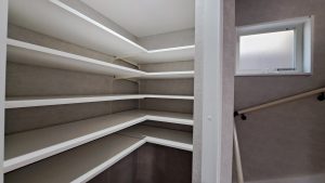 なんと、階段奥のスペース、キッチン奥にた~っぷりの収納。沢山買い置きしても、災害用に保存しても